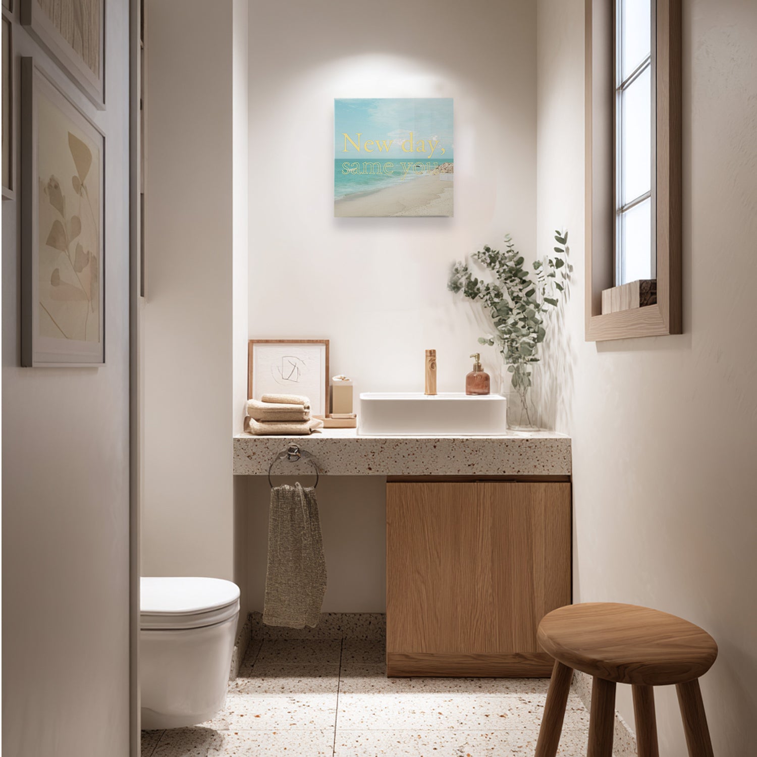 静かに波が満ちていくように、今日もまた新しい朝がやってくる。 でも、あなたはあなたのままで大丈夫。 このアートは、そんな「変わらない強さ」を肯定する一枚です。 やわらかな光と優しい海辺の風景が、毎朝あなたを迎えてくれます。