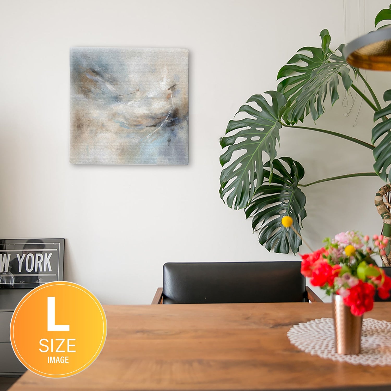 軽量な木枠とキャンバスからできており、特別な加工は必要なくそのまま飾ることができます。