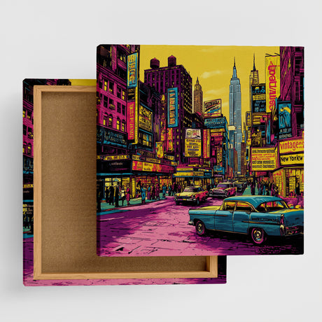 ¥2,345~単価 /利用不可ネオンが彩るニューヨーク – レトロな街並みとヴィンテージカー | インテリア雑貨 アートパネル キャンバス