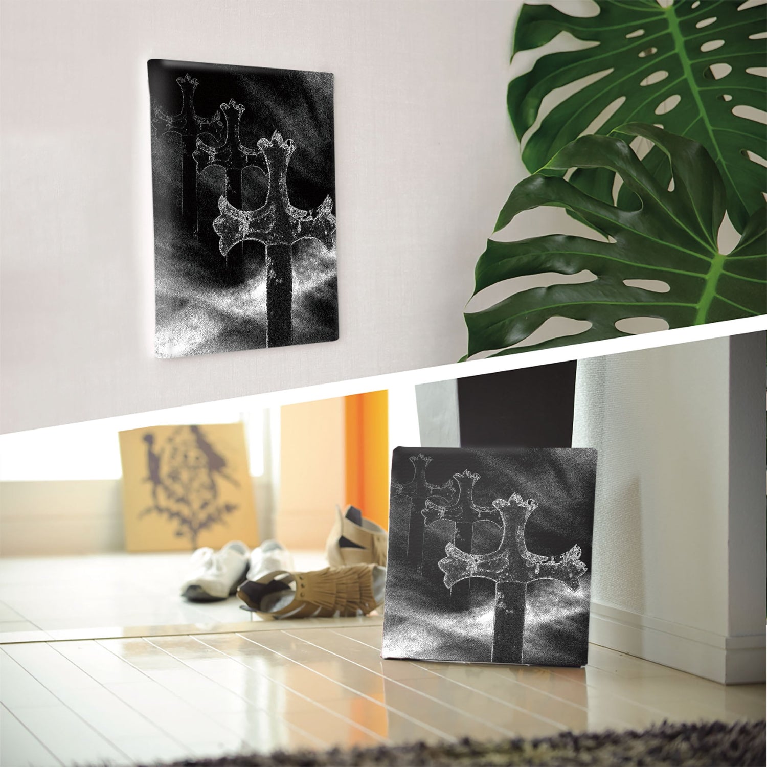 軽量な木枠とキャンバスからできており、特別な加工は必要なくそのまま飾ることができます。