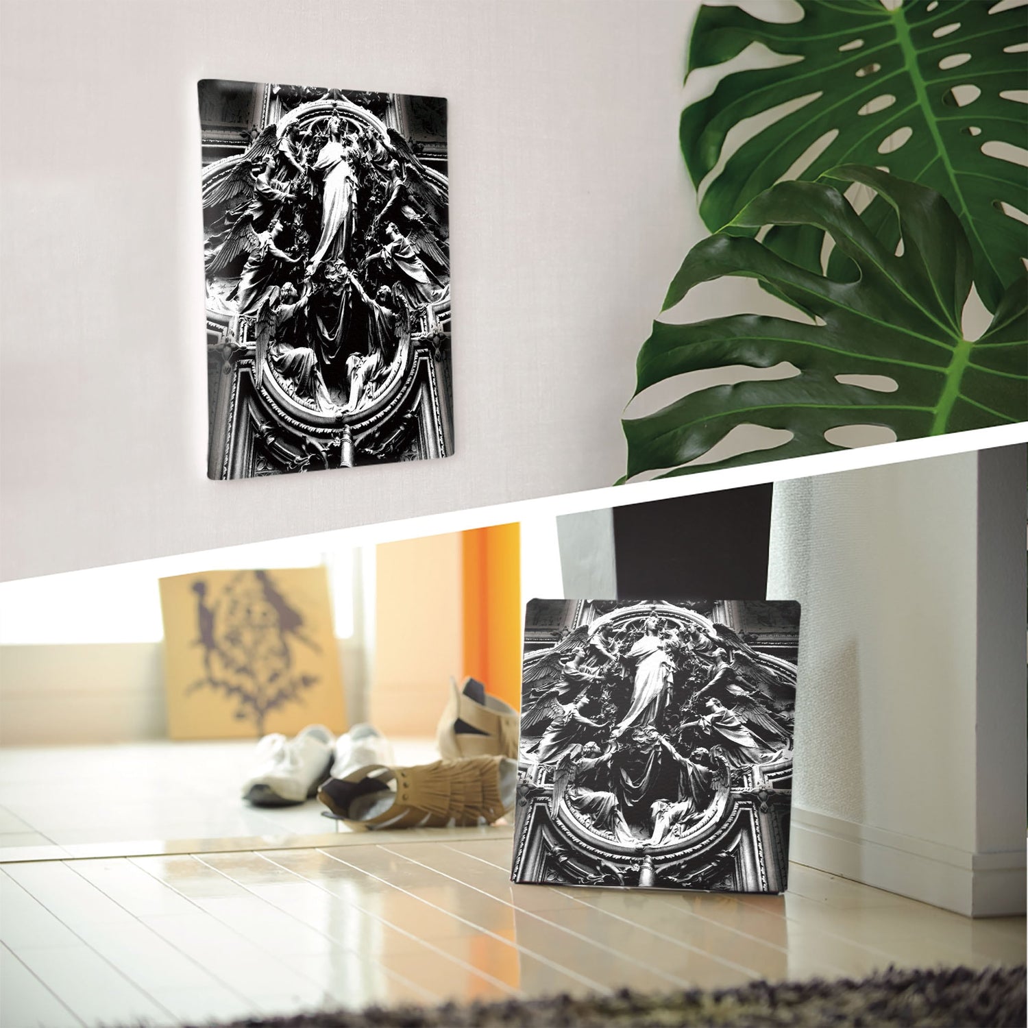 軽量な木枠とキャンバスからできており、特別な加工は必要なくそのまま飾ることができます。