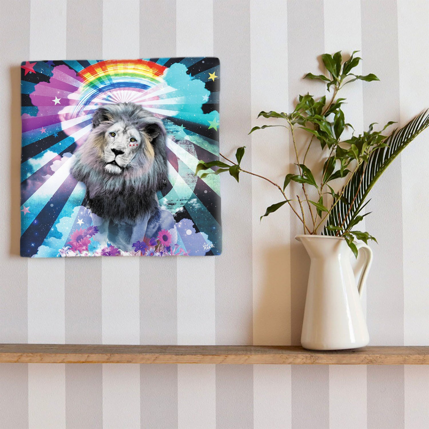 軽量な木枠とキャンバスからできており、特別な加工は必要なくそのまま飾ることができます。