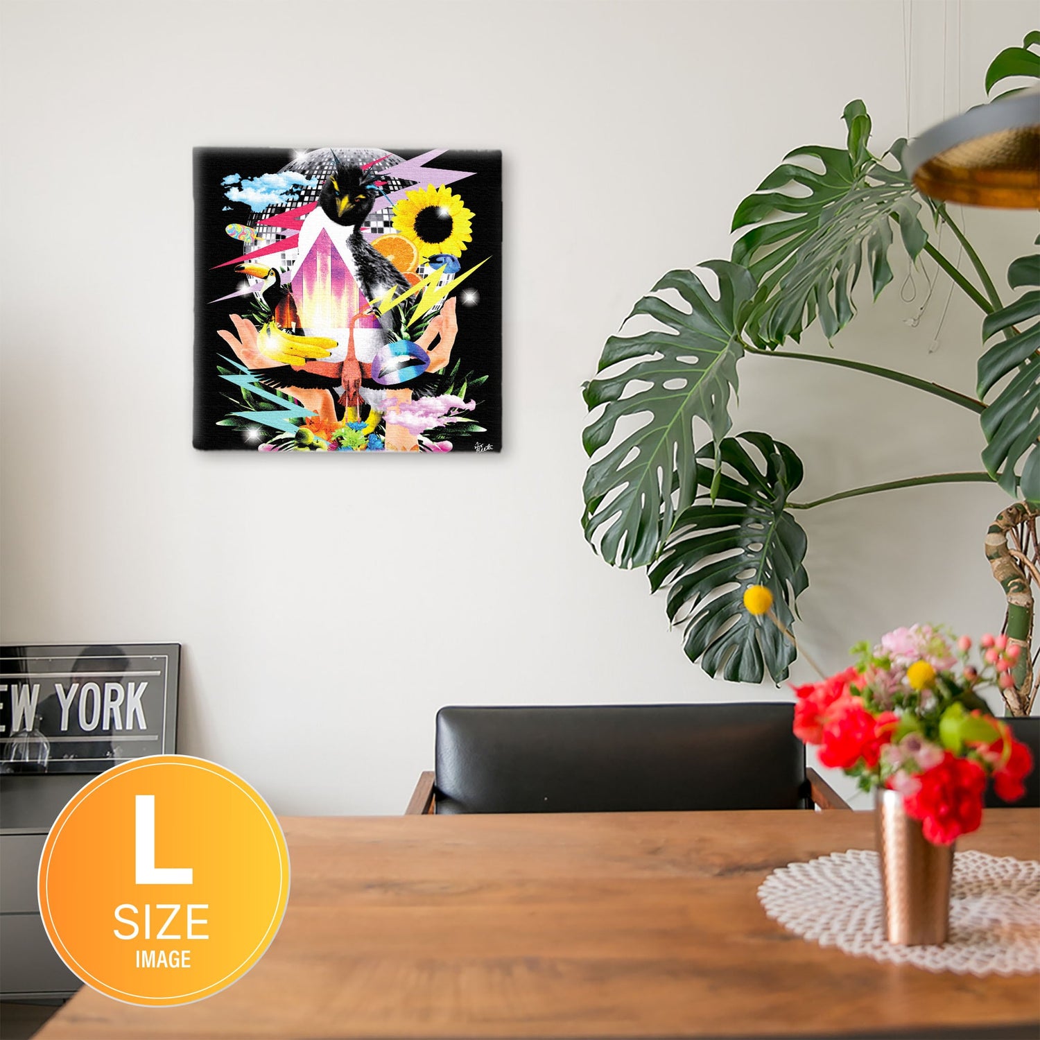 軽量な木枠とキャンバスからできており、特別な加工は必要なくそのまま飾ることができます。