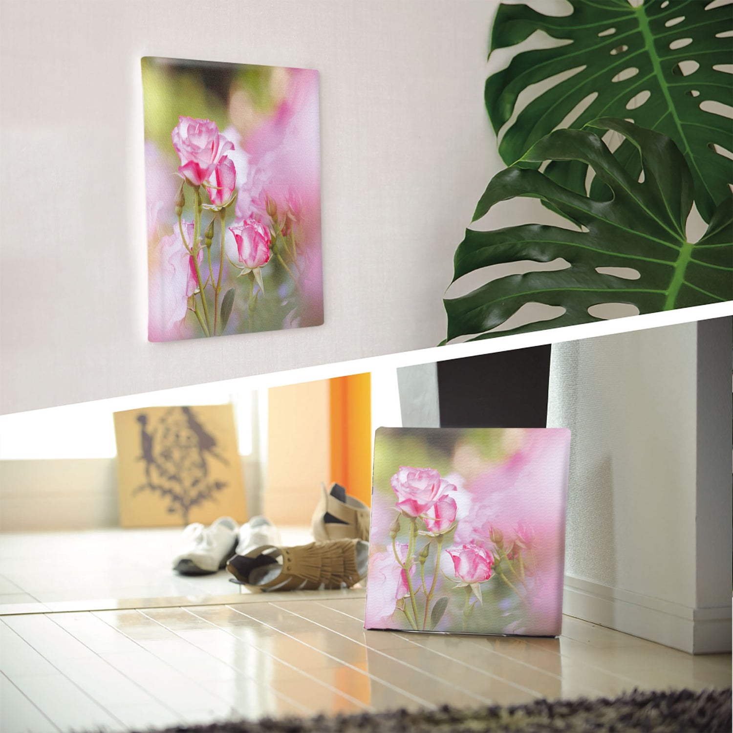 バラの壁掛けアート インテリア雑貨 アートパネル キャンバス 花 ピンク nori-2005-008 - Mサイズ(30×30cm) ...は取り寄せ中で入荷次第発送します。