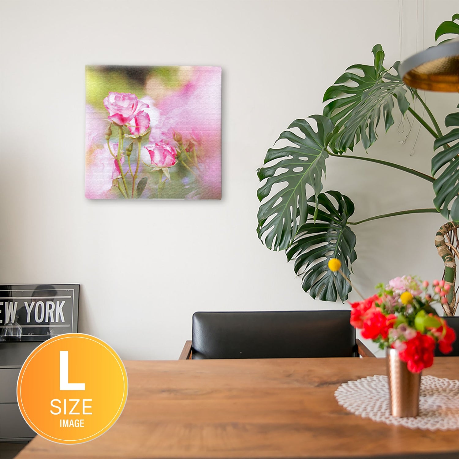 バラの壁掛けアート インテリア雑貨 アートパネル キャンバス 花 ピンク nori-2005-008