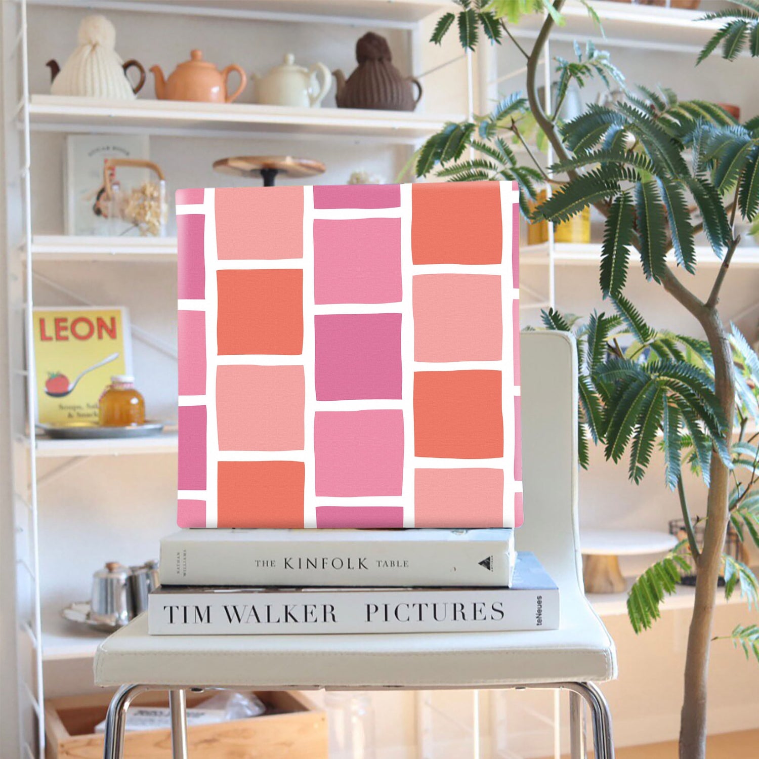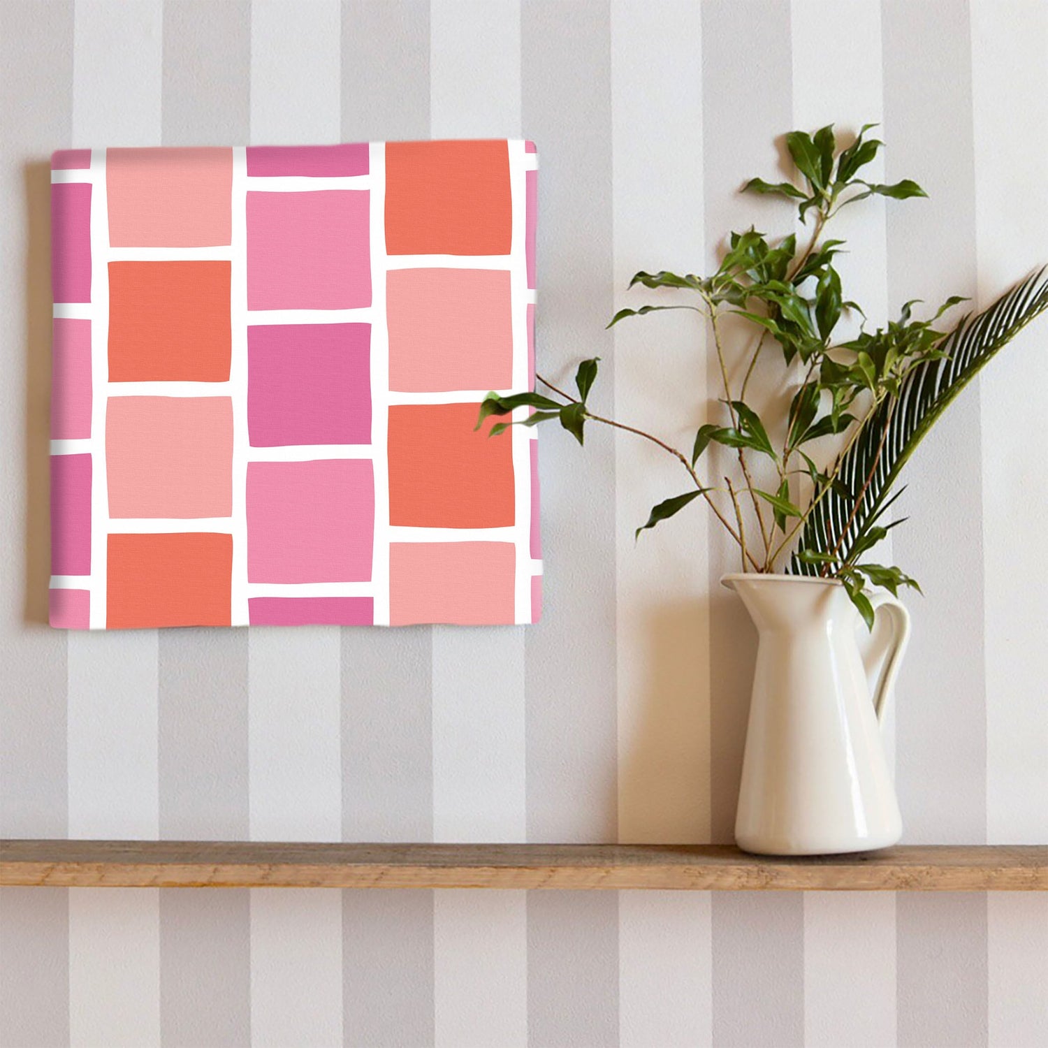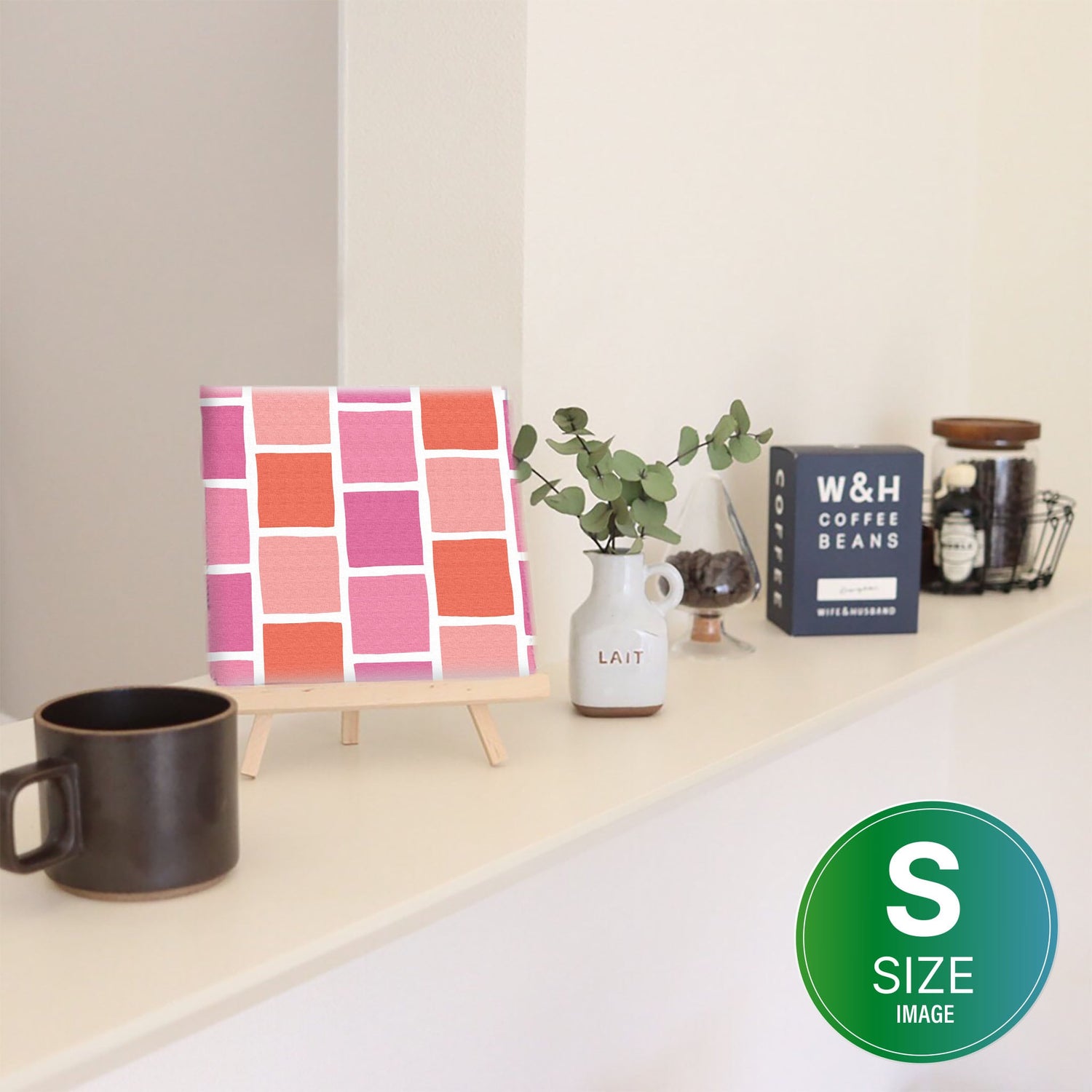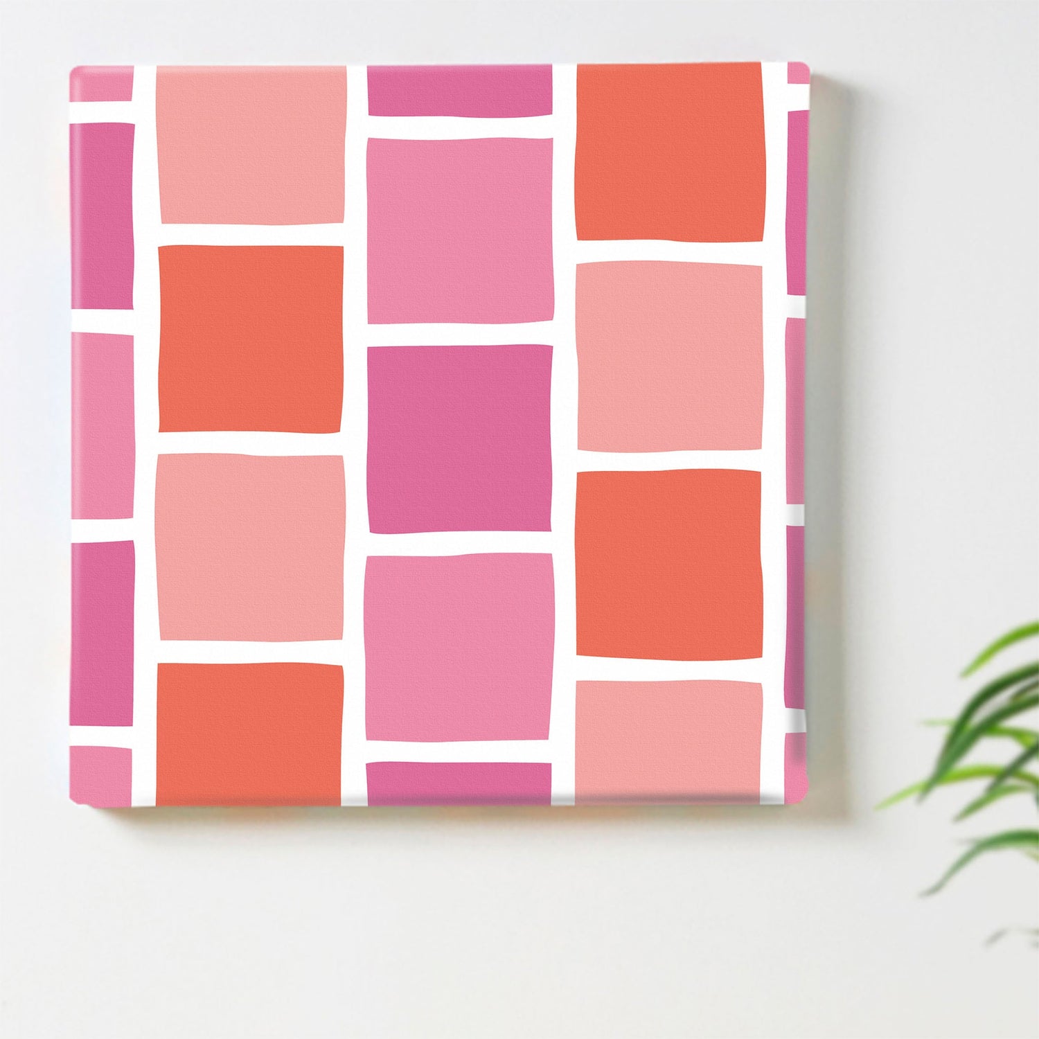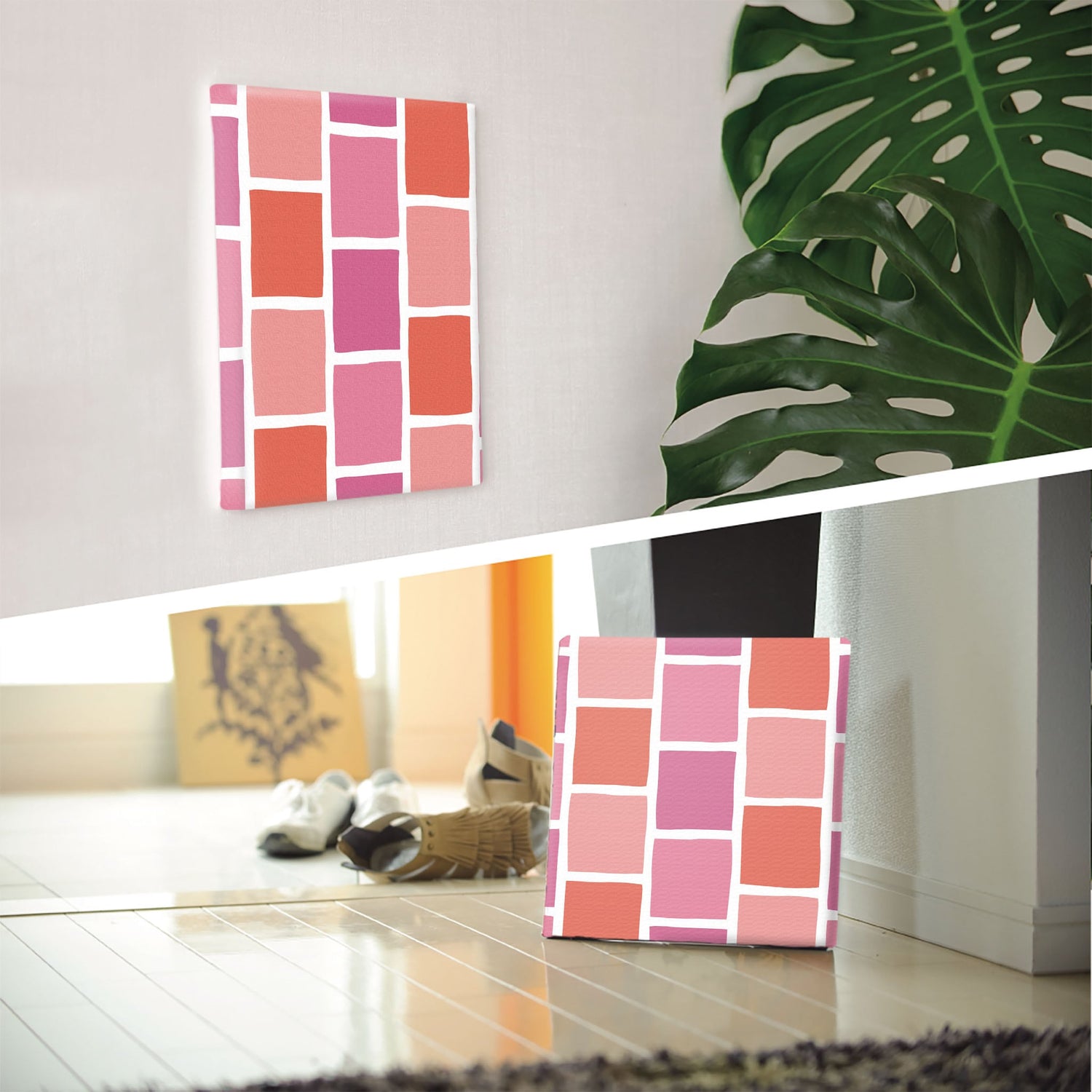 ピンクのタイルモチーフ・インテリア小物 アート 雑貨 pat-0118