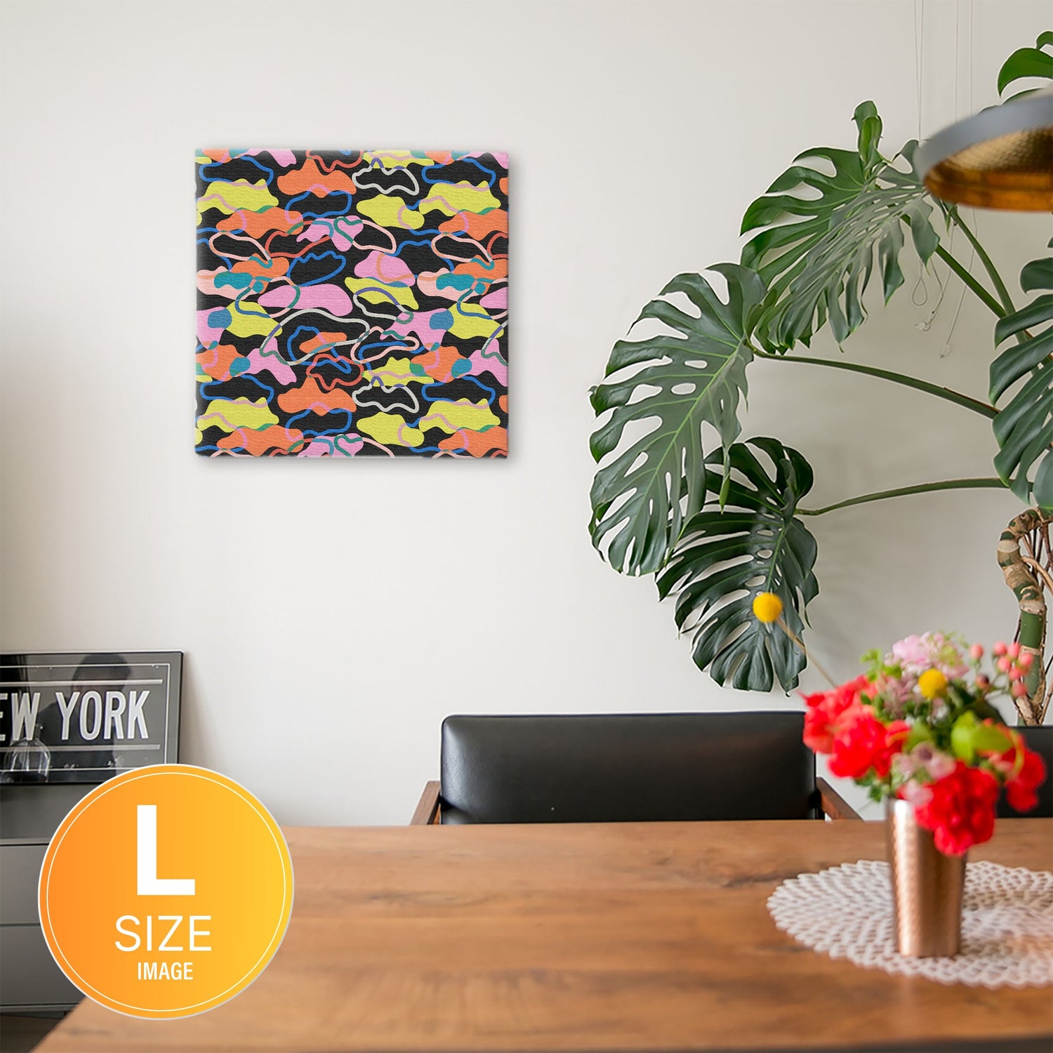 軽量な木枠とキャンバスからできており、特別な加工は必要なくそのまま飾ることができます。