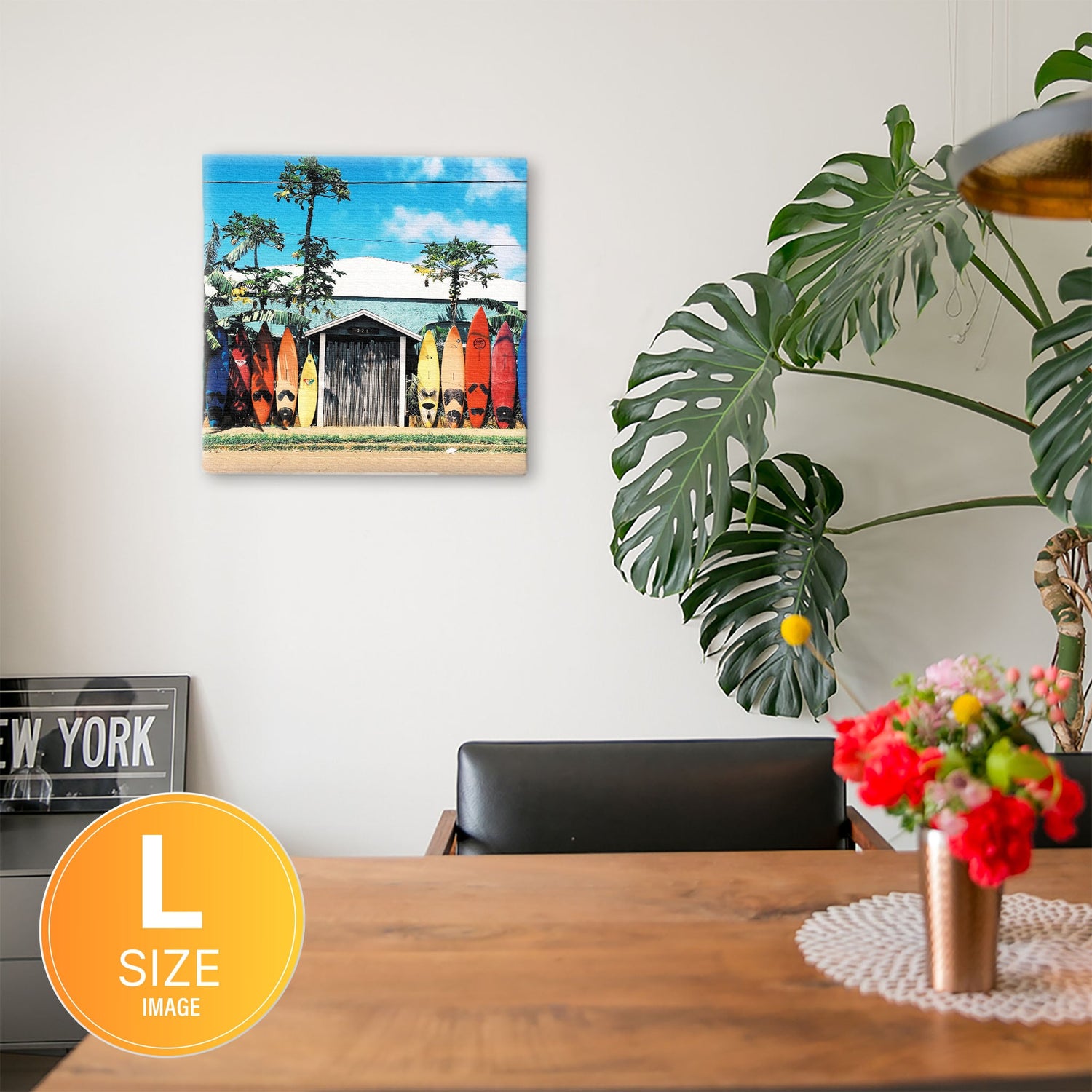 軽量な木枠とキャンバスからできており、特別な加工は必要なくそのまま飾ることができます。