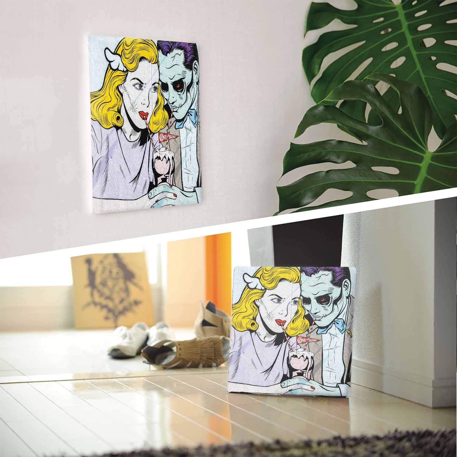 軽量な木枠とキャンバスからできており、特別な加工は必要なくそのまま飾ることができます。
