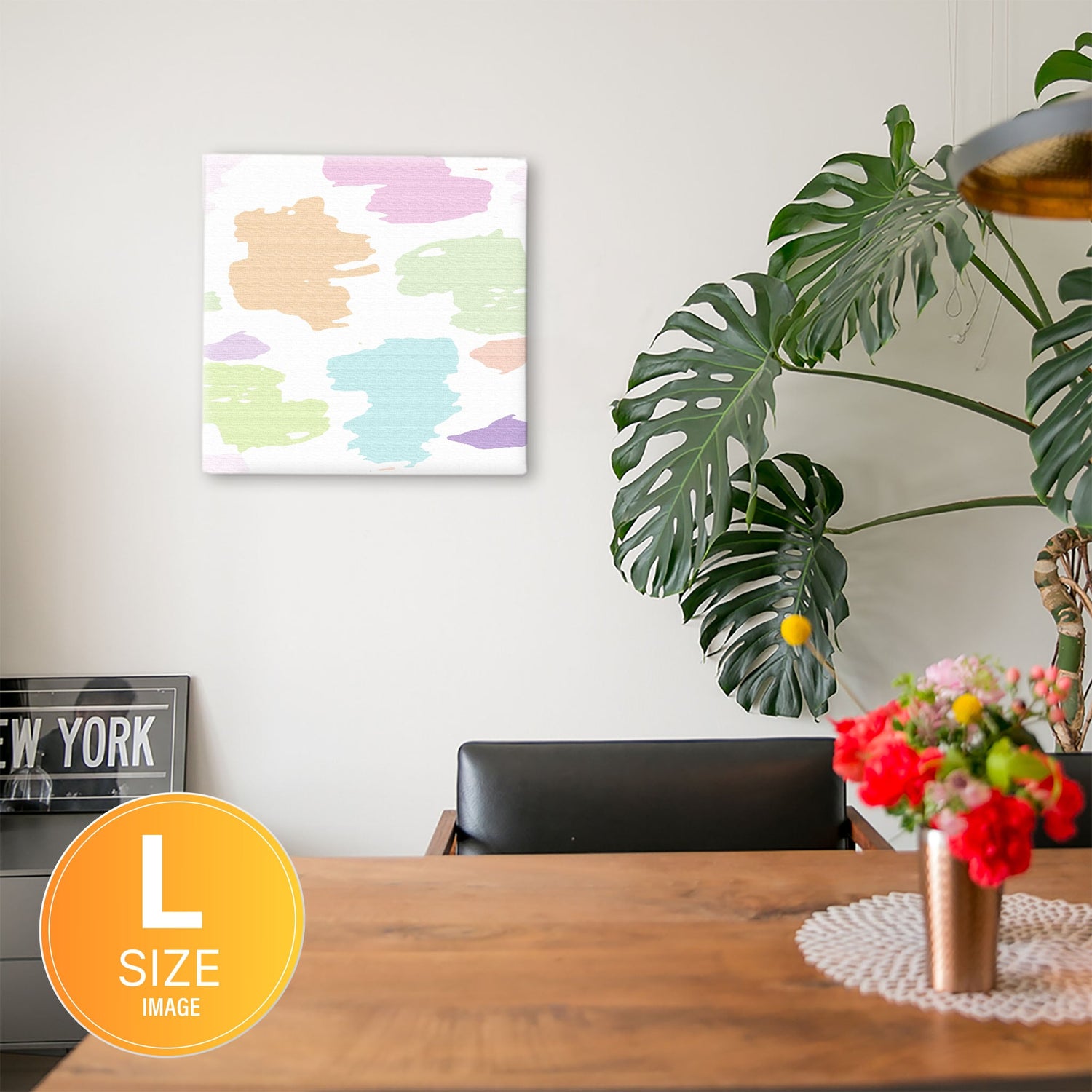 軽量な木枠とキャンバスからできており、特別な加工は必要なくそのまま飾ることができます。