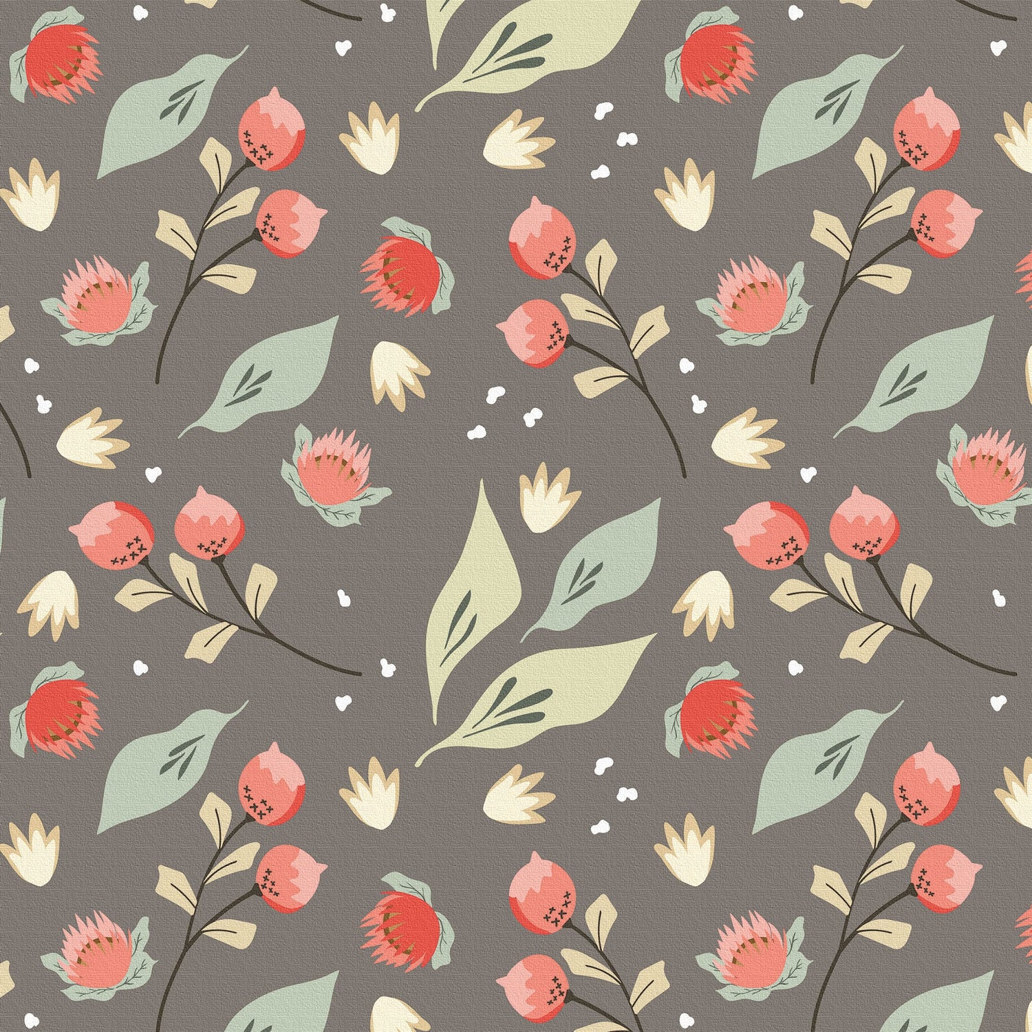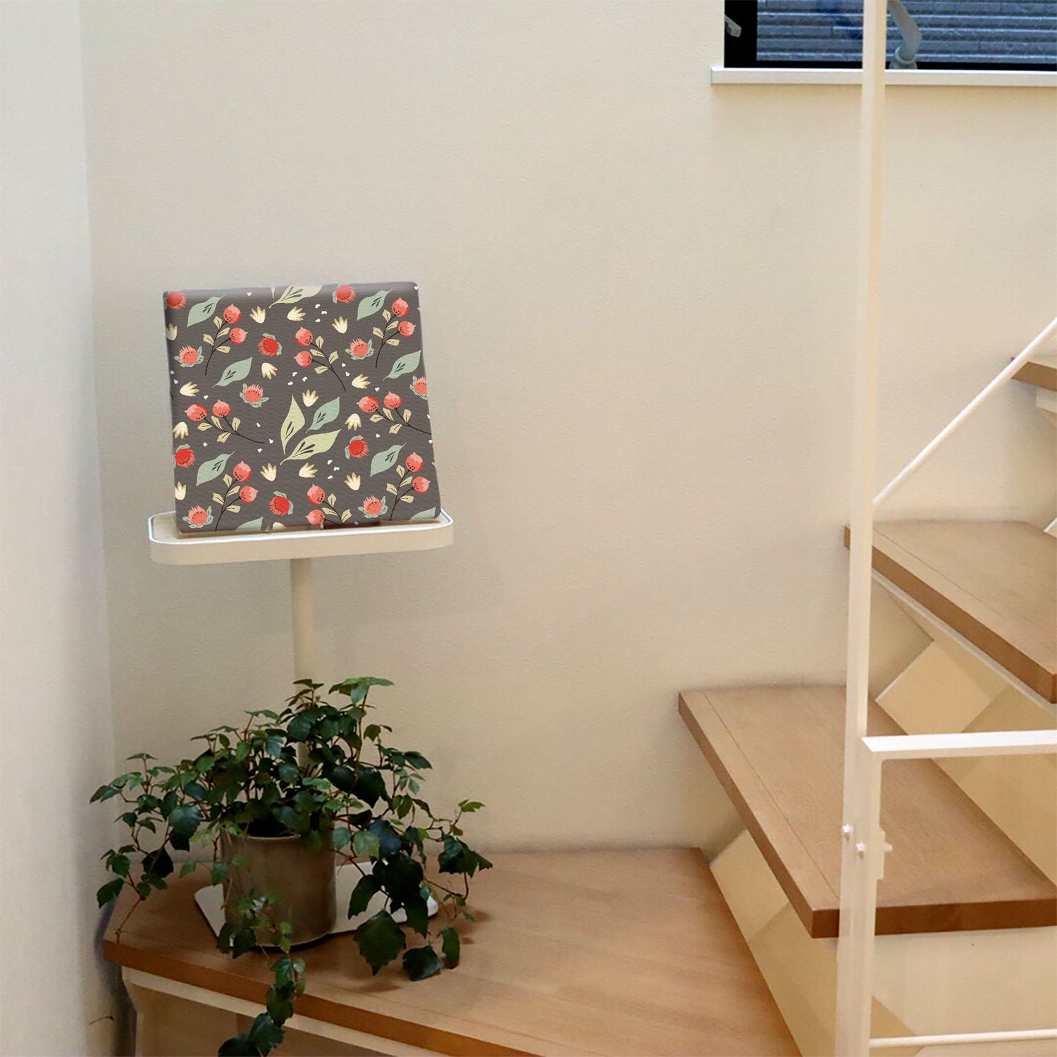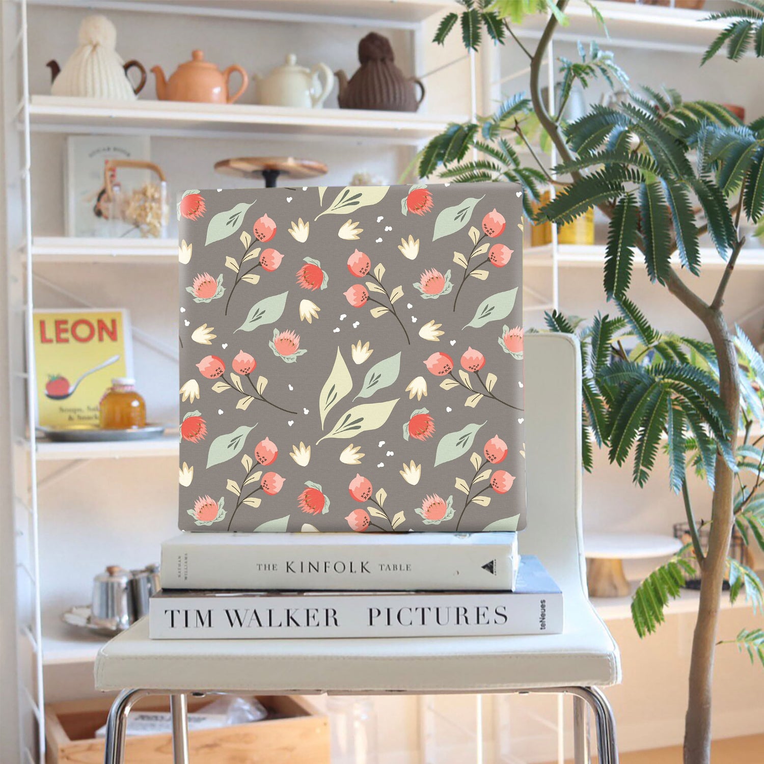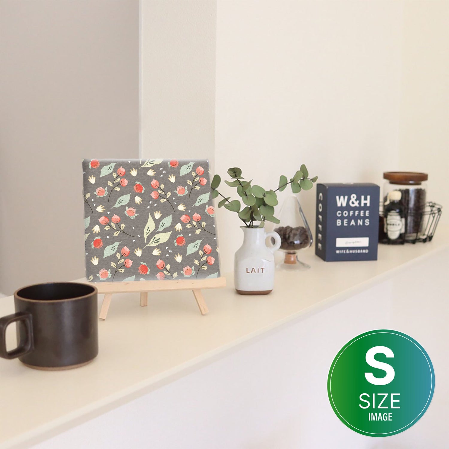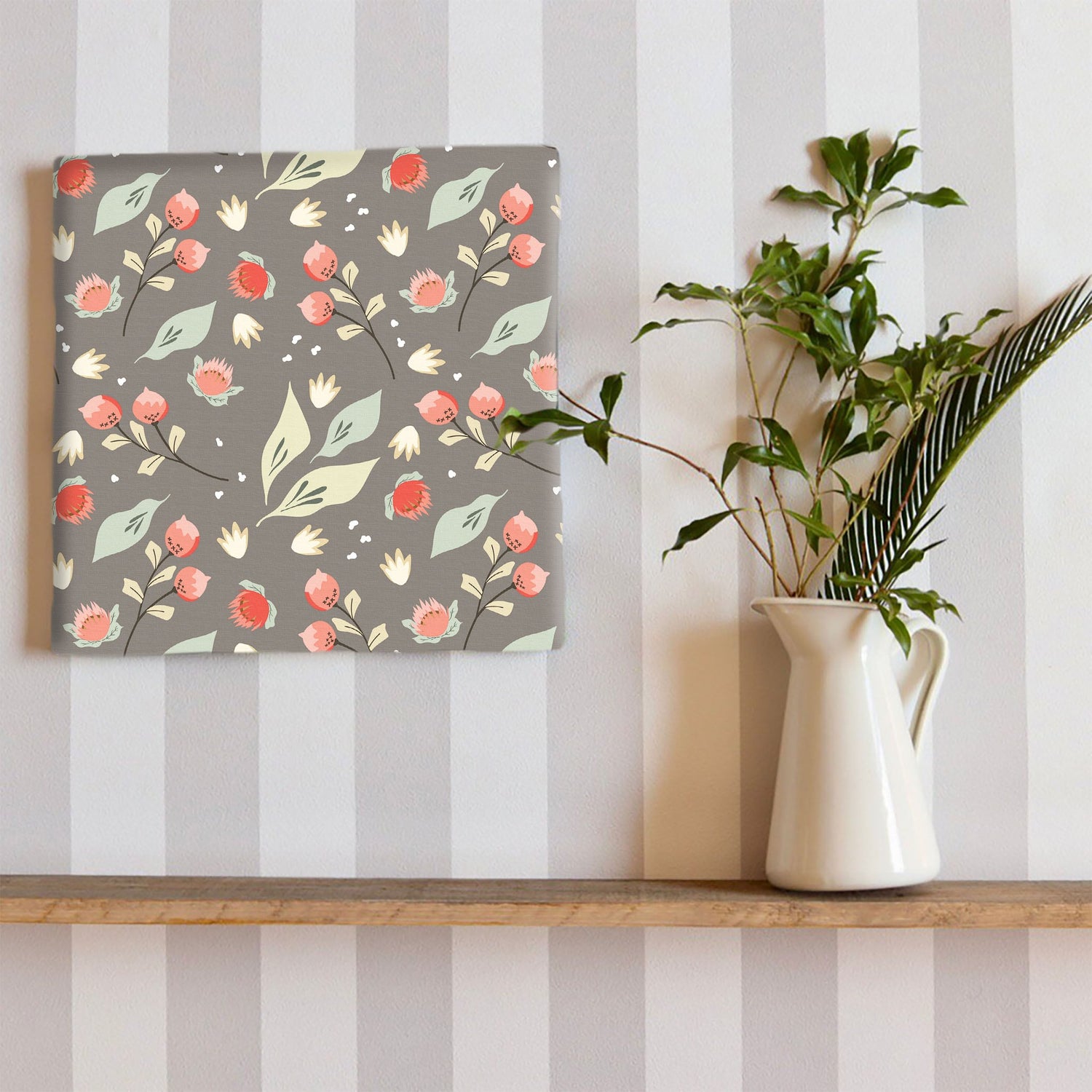 Floral wall art, interior decoration, art panel, canvas, gray, plants, patt-2003-09 - Medium size (30×30cm) is backordered and will ship as soon as it is back in stock.