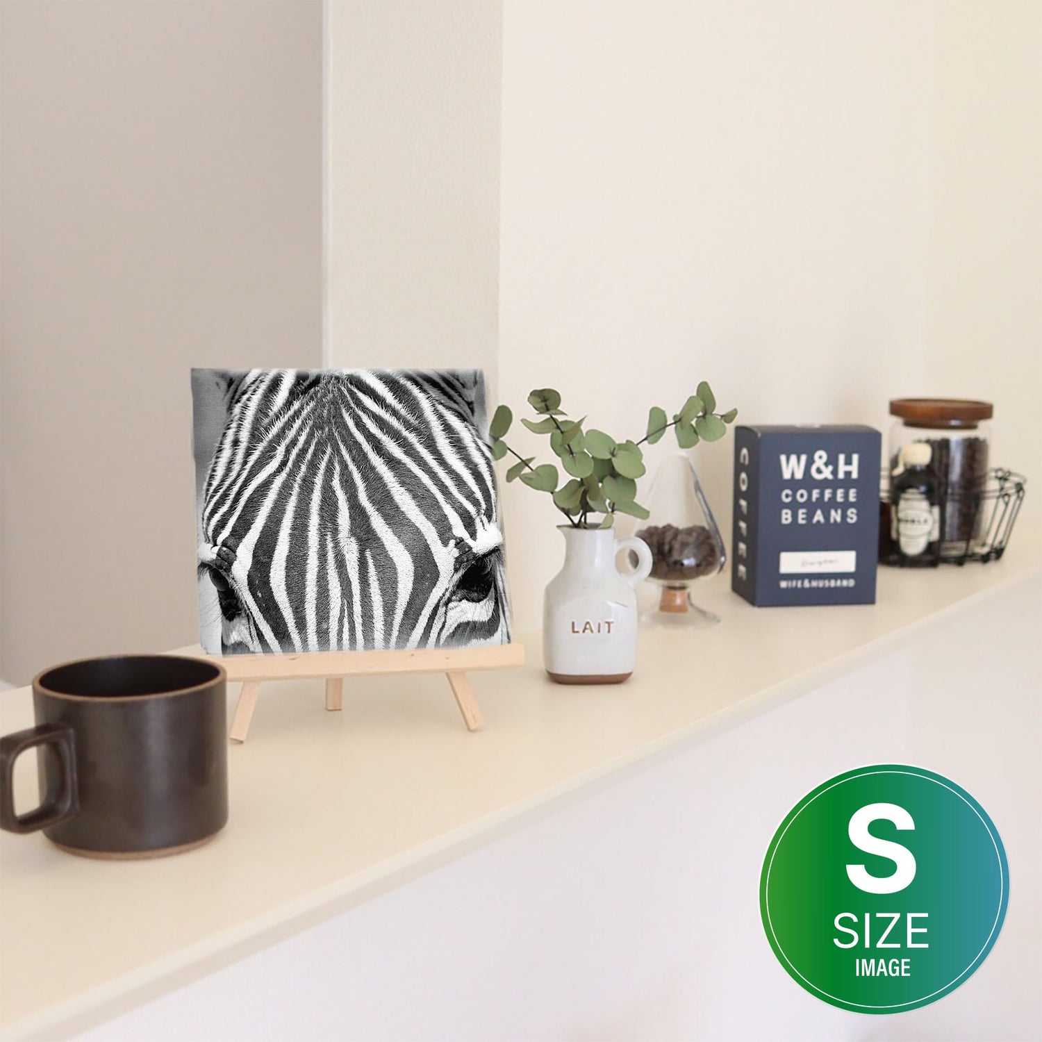 Zebra-themed fabric panel wall art pho-0060 - Medium size (30×30cm) is backordered and will ship as soon as it is back in stock.