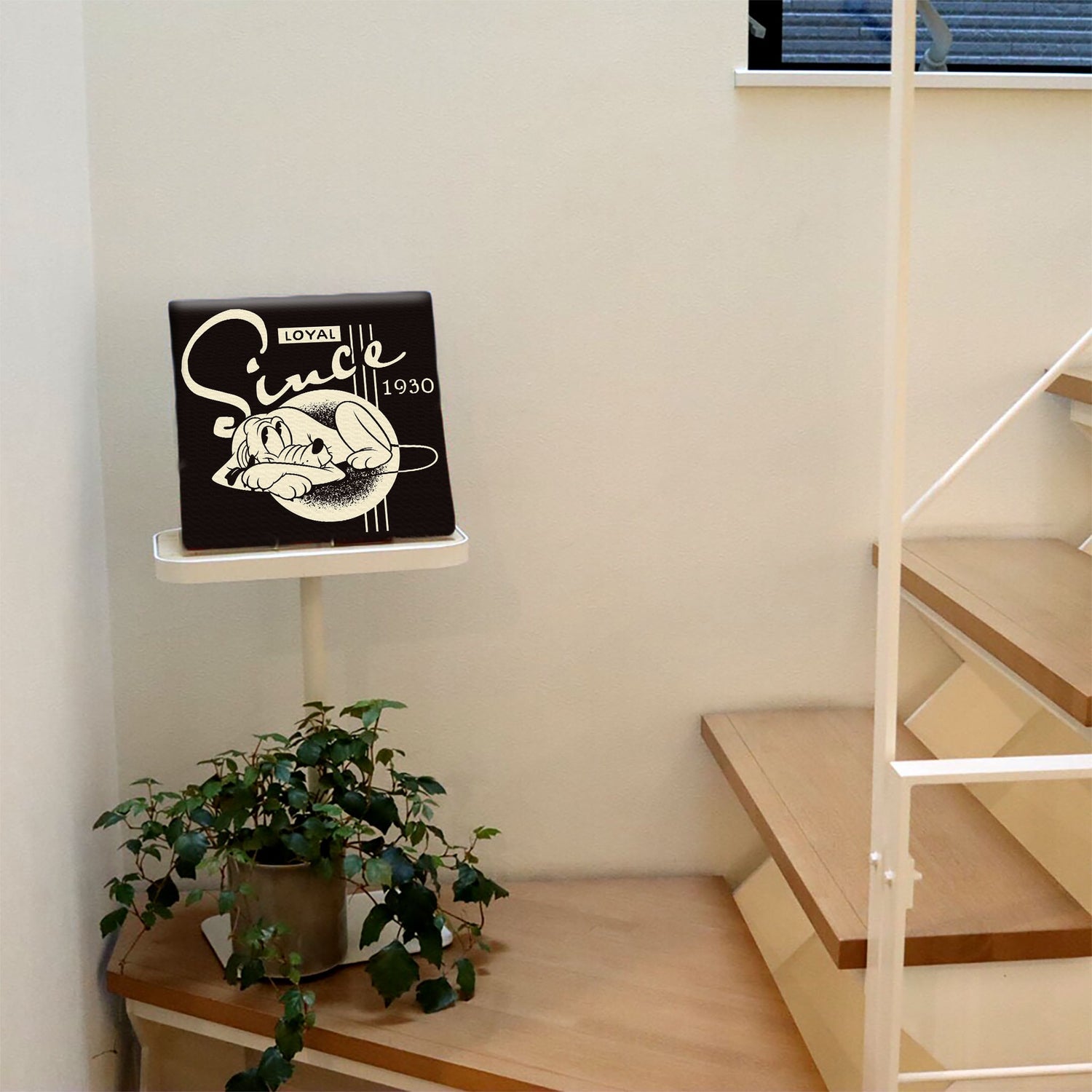 スマホ並みの軽量で(150g)テープやピンで壁に優しく飾れます。*Mサイズの場合