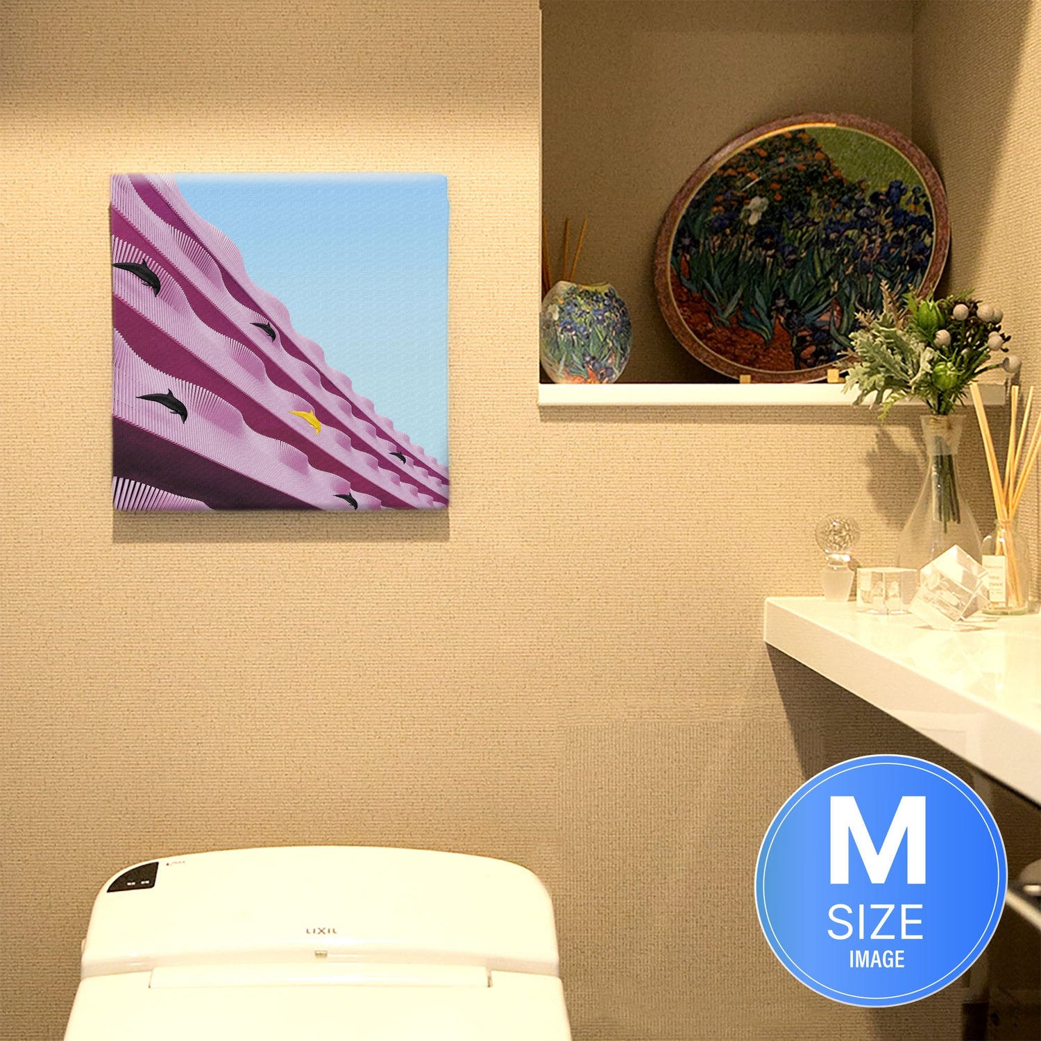 最新の印刷技術により、ひと筆ひと筆の息遣いまで感じられるような豊かな表現力を実現。まるで絵の具を重ねたような艶と立体感が、見るたびに高揚感をもたらします。飾るだけで、日常に上質なアートのある暮らしが始まります。